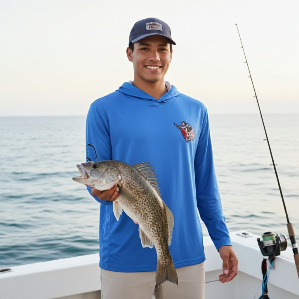 Perfect for long days on the boat or casual wear, this hooded performance fishing shirt delivers the comfort, durability, and sun protection every angler needs.